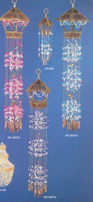 Wholesale large seashell wind chimes from 31 to 61 inches in length, made out of cockle shells, nassarius shells, ringtop cowrie shells, sun and moon shells, capiz shells, sea urchin spines and other natural shells. If you are looking for large shell wind chimes, or shell chimes for coastal home decorating or tropical decor, nautical decor or seashell decor, we have a wide selection to choose from. We also have large seashell spiral wind chimes, colorful shell wind chimes, seashell wind chimes made with natural shells and dyed shells and shell outdoor wind chimes and indoor wind chimes made out of dyed seashells and other pretty shells, cut shells and small clam shells. All our shell chimes are hand crafted so you can expect a slight variation in the size of each chime.