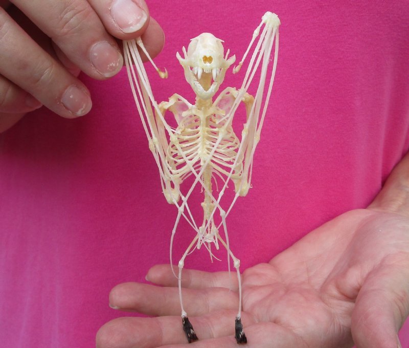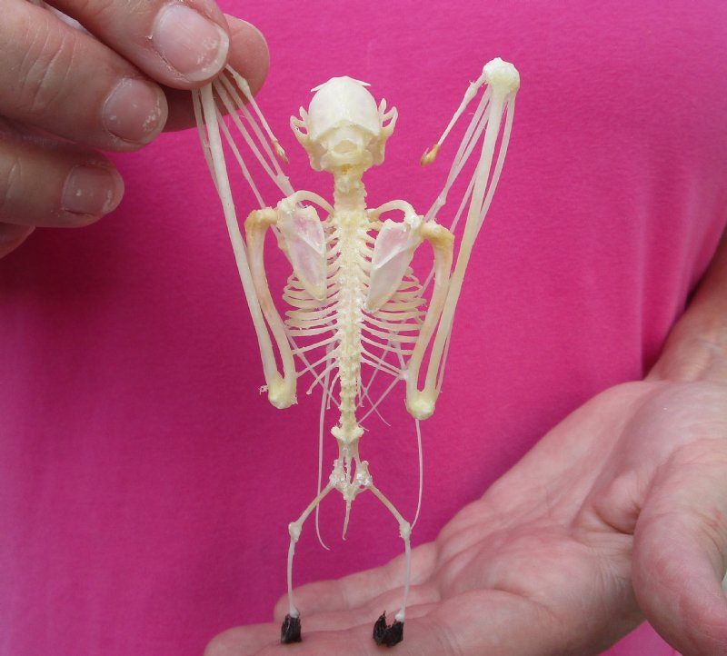 Lesser Short Nosed Fruit Bat skeleton with wings folded measuring  5" tall  - $40.00 each; 4 or more @ $36.00 each