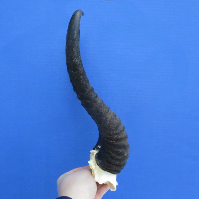 Male Springbok Skull Plate with Horns for sale. The horns measure approximately 12 inches, measured around the curve of the horns and are on a Springbok skull plate. - Review photos. The skull plate with horns is from a wild African Springbok and will have imperfections caused by the animal living in the wild and the natural aging process.
