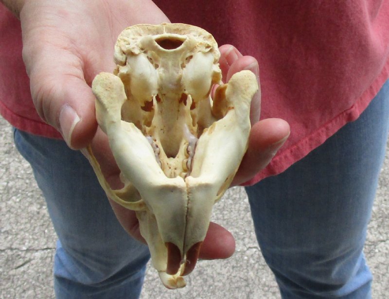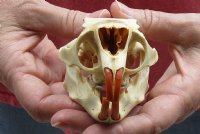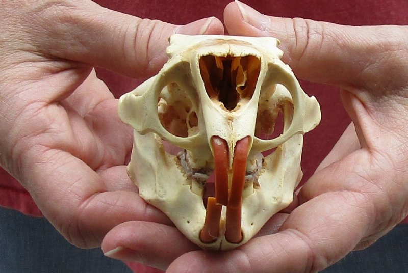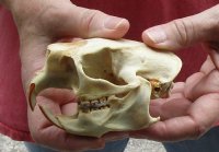 This is a North American porcupine skull, measuring approximately 4-1/4 inches long and 2-1/2 inches wide. This porcupine skull (Erethizon dorsatum) is ready for display and is perfect for skull collectors and collectors of weird and unusual items. All of our animal skulls are commercial grade and imperfect. Our porcupine skulls will have imperfections due to the natural aging process and living in the wild--scars, blemishes, rub areas, broken and missing teeth, bug bite marks, etc.