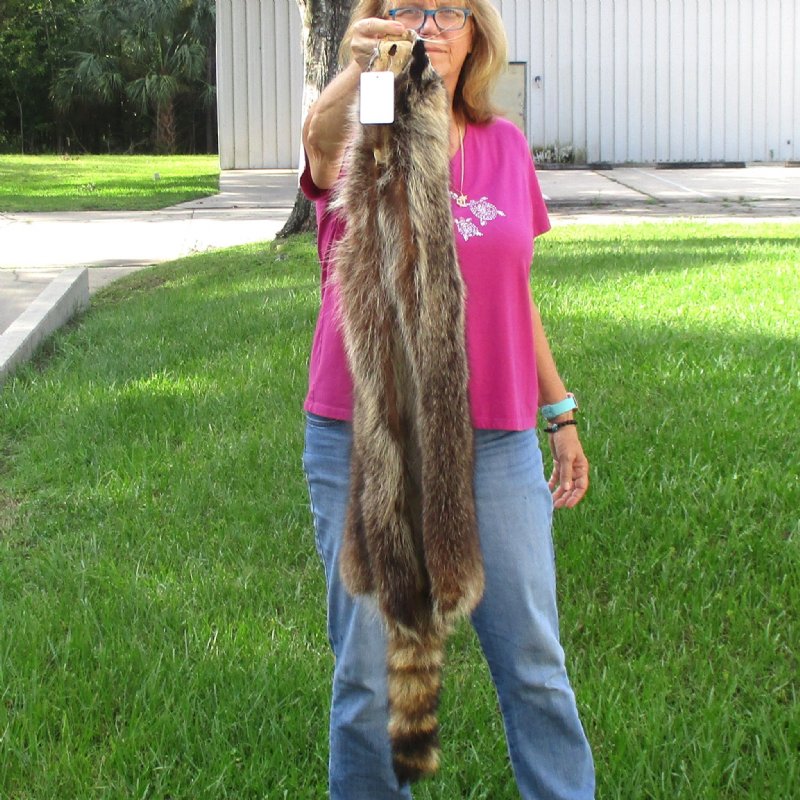 Real North American Raccoon fur pelt, tanned hide for sale. This hide measures approximately 42 inches long.   Review photos.