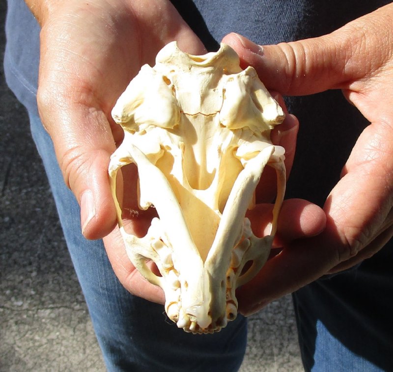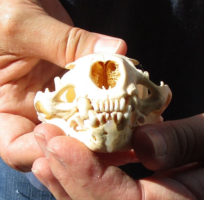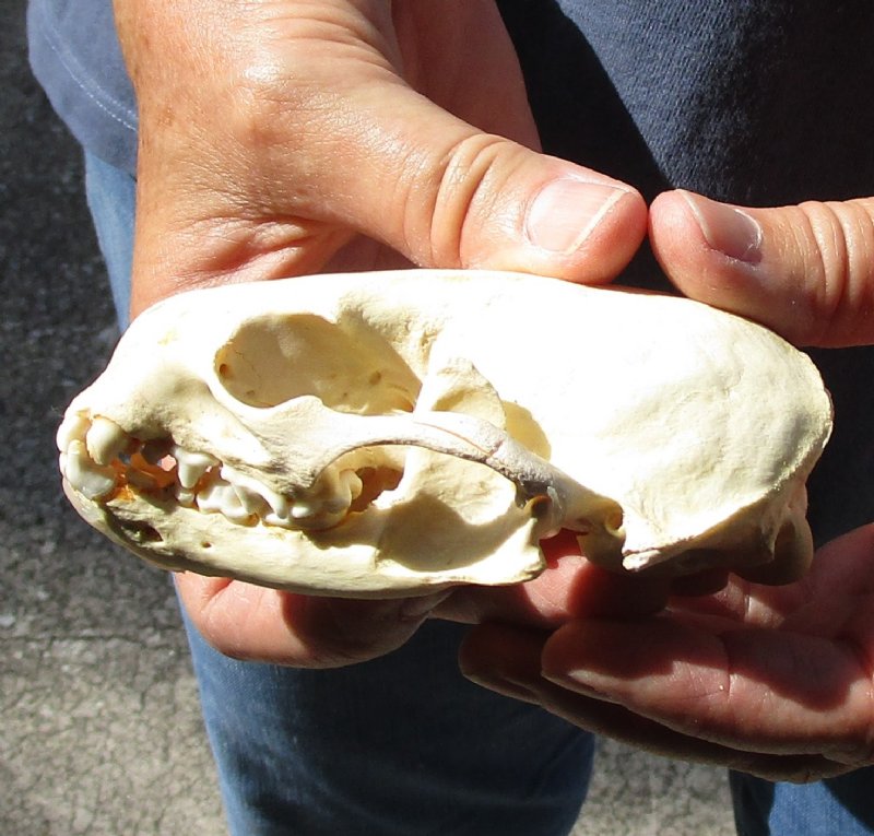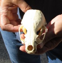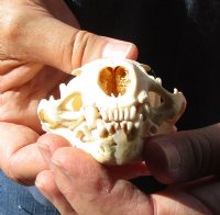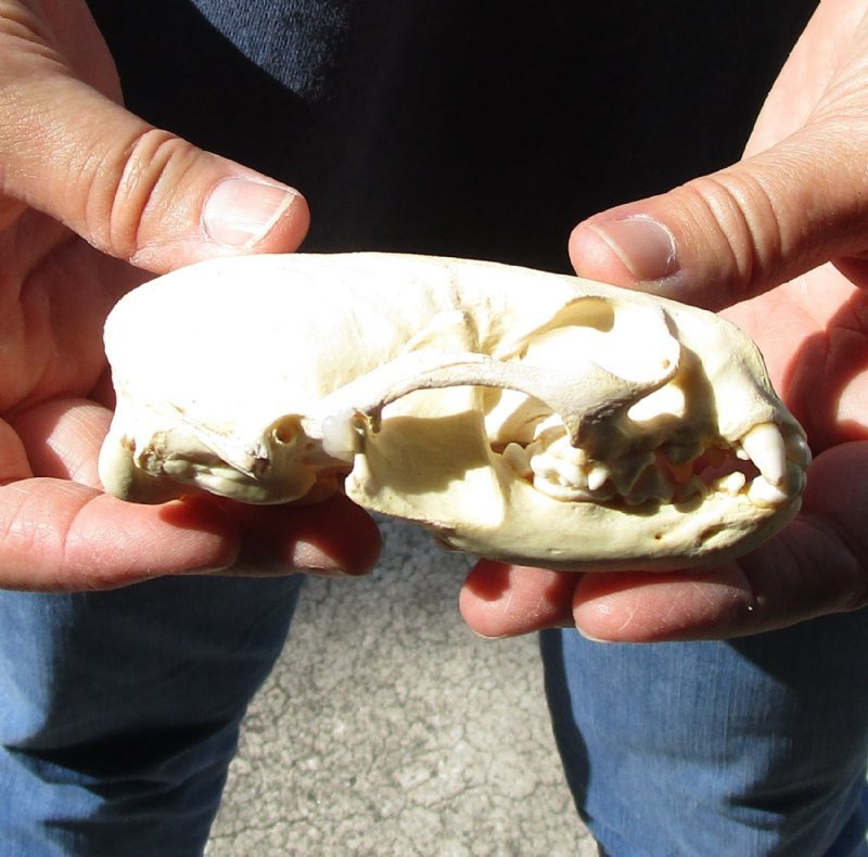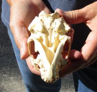 North American River Otter (Lontra canadensis) skull, also known as the northern river otter or common otter. This skull measuring approximately 4-1/4 inches long by 2-1/2 inches wide.  review photos. Our otter skulls have been cleaned and are ready for display; however, some may be off-white in color and have small patches of discoloration.  These skulls are from wild otter and are commercial grade and imperfect. They may have imperfections due to the natural aging process and living in the wild--scars, blemishes, rub areas, broken teeth, missing teeth, bug bite marks, etc.