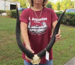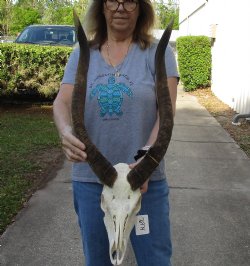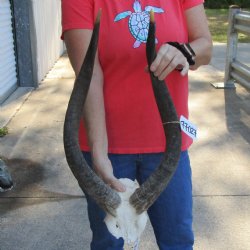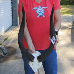An African nyala skull with horns, hand picked and photographed is perfect for African themed decorating, hunting lodge decor and rustic cabin decor. All of our African nyala skulls with horns are from wild African nyala and all will have natural imperfections caused by the animal fighting and living in the wild. All our nyala skulls are by-products of the African Government's culling program and farming industry. All products were professional cleaned and/or professionally tanned in South Africa and cleared by the U. S. Fish and Wildlife Services and U.S. Customs Services for legal entry into the United States.
