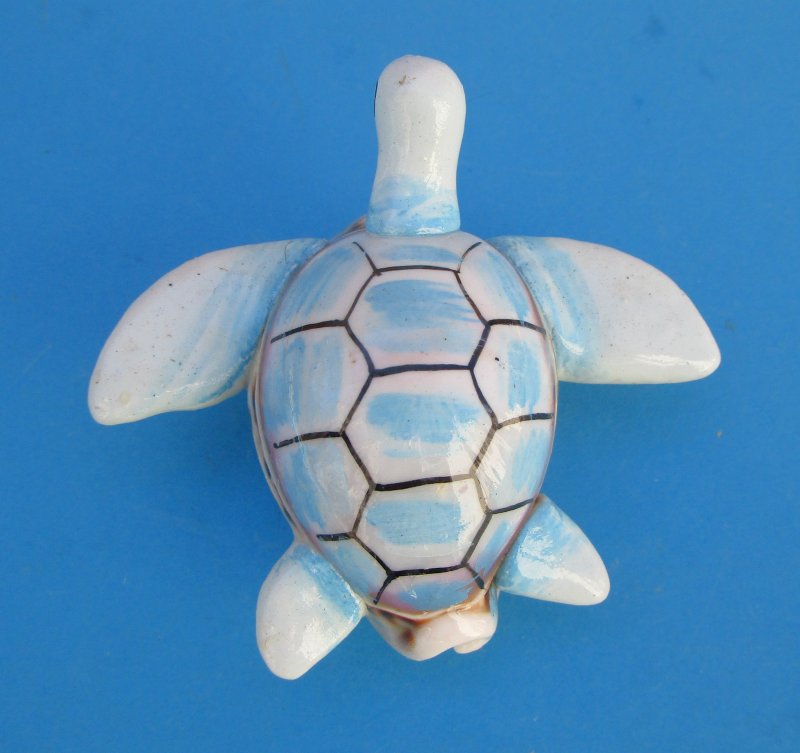 Painted Blue and White Tiger Cowrie Turtle Magnets - 10 pcs @ $2.60 each; 30 pcs @ $2.35 each