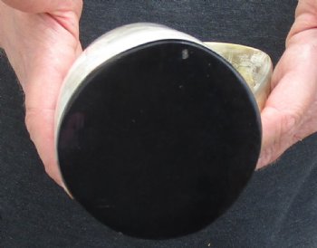 Polished Buffalo Horn Mug, Cow Horn Mug with carved design 7-1/4 inches tall. For sale for $15
