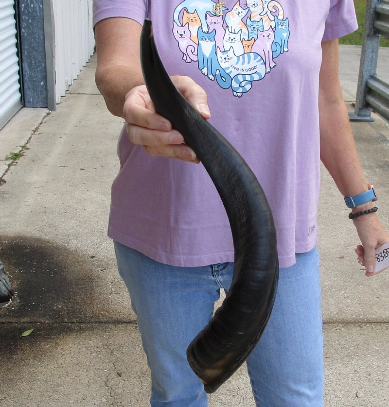 Polished Kudu horn for sale (Tragelaphus strepsiceros / Greater Kudu) imported from South Africa, measuring approximately 23 inch, measured around the curl of the horn - not straight.   review photos. Kudu horns are used in making shofars, blowing horns, kudu horn instruments, furniture legs, lamps, sconces, knife handles, cane handles, inlaid crafts and numerous other taxidermy crafts. Our African kudu horns are by-products of the farming industry and the African Government culling programs. The kudu horns have been professionally cleaned in Africa and cleared for entry into the United States by the U.S. Fish and Wildlife Service and U.S. Customs. We are direct importers of African wildlife products and have all Federal and State licenses.