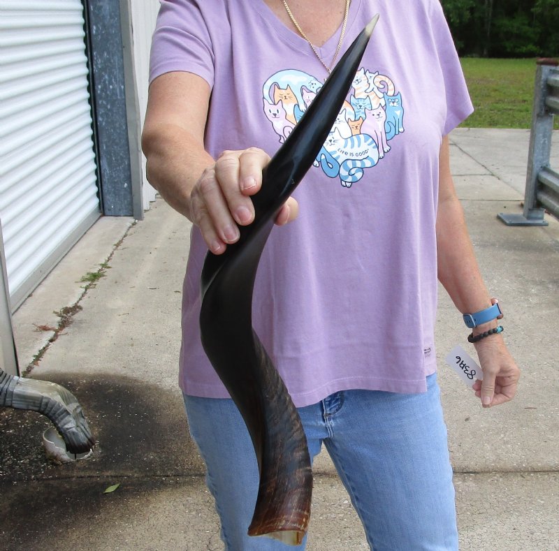 Polished Kudu horn for sale (Tragelaphus strepsiceros / Greater Kudu) imported from South Africa, measuring approximately 24 inch, measured around the curl of the horn - not straight.   review photos. Kudu horns are used in making shofars, blowing horns, kudu horn instruments, furniture legs, lamps, sconces, knife handles, cane handles, inlaid crafts and numerous other taxidermy crafts. Our African kudu horns are by-products of the farming industry and the African Government culling programs. The kudu horns have been professionally cleaned in Africa and cleared for entry into the United States by the U.S. Fish and Wildlife Service and U.S. Customs. We are direct importers of African wildlife products and have all Federal and State licenses.