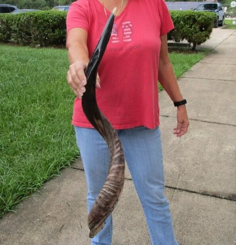 Polished Kudu horn for sale (Tragelaphus strepsiceros / Greater Kudu) imported from South Africa, measuring approximately 35 inch, measured around the curl of the horn - not straight.   review photos. Kudu horns are used in making shofars, blowing horns, kudu horn instruments, furniture legs, lamps, sconces, knife handles, cane handles, inlaid crafts and numerous other taxidermy crafts. Our African kudu horns are by-products of the farming industry and the African Government culling programs. The kudu horns have been professionally cleaned in Africa and cleared for entry into the United States by the U.S. Fish and Wildlife Service and U.S. Customs. We are direct importers of African wildlife products and have all Federal and State licenses.