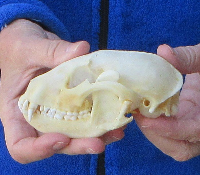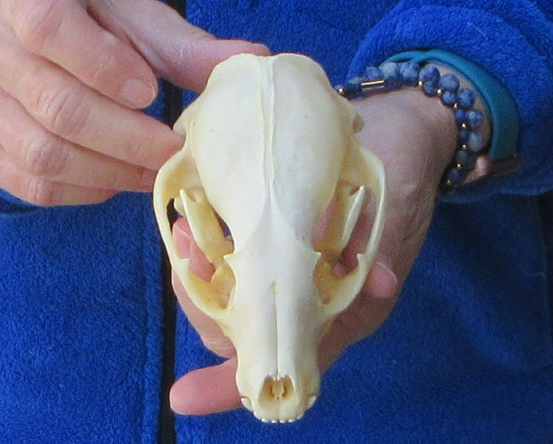 Raccoon skull, small animal skull measuring approximately 5 inches long and 3 inches wide.    Review all photos.  The raccoon skull is a small animal skull from a wild raccoon and will have natural imperfections found on all wild animal skulls. Our raccoon skulls have been cleaned, however some will have a golden color or will have patches of light yellow.