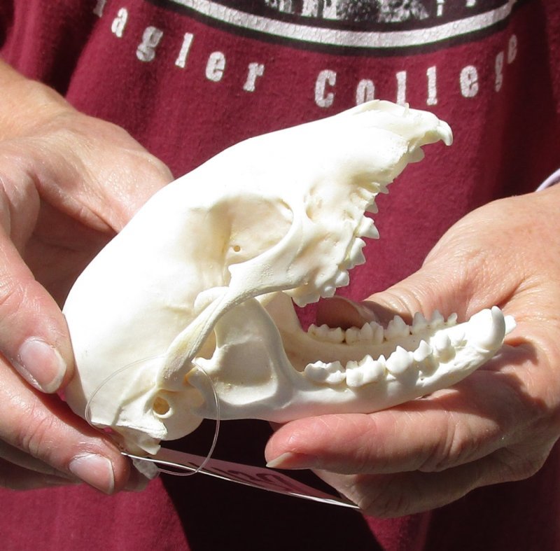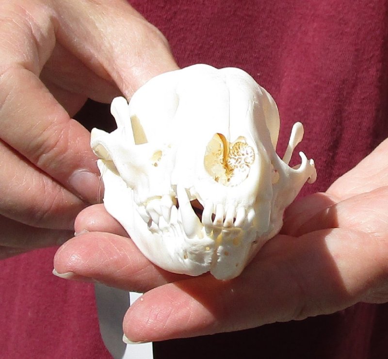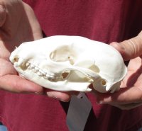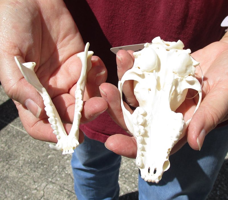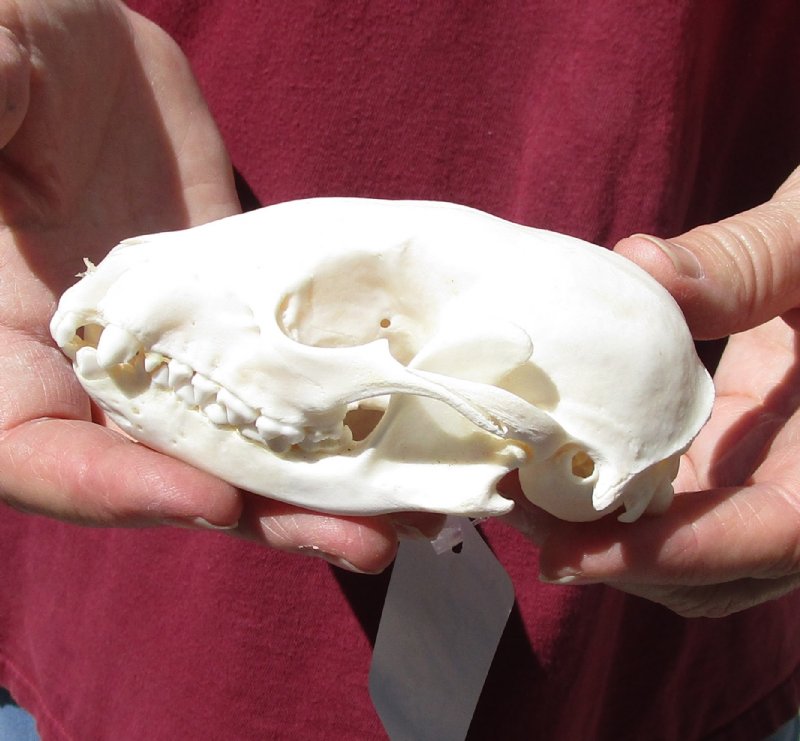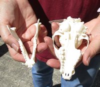 Raccoon skull, small animal skull measuring approximately 4-1/2 inches long and 2-1/2 inches wide.   Review all photos.  The raccoon skull is a small animal skull from a wild raccoon and will have natural imperfections found on all wild animal skulls. Our raccoon skulls have been cleaned, however some will have a golden color or will have patches of light yellow.