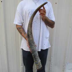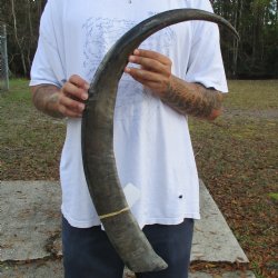 Semi-Polished Water Buffalo Horns with visible ridges and Natural Cow Horn and Raw Cattle Horns, in sizes starting at 12 inches all the way to 28 inches. We also carry buffed cattle and cow horns with a sandpaper like finish and without any visible ridges. We have hand selected and photographed all of these buffed, semi-polished and natural cow and buffalo horns for customers wanting to see exactly what they are buying. These buffed, natural and semi polished cow and buffalo horns vary in color, shape and size and are used for cabin