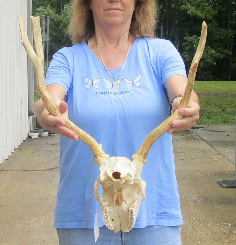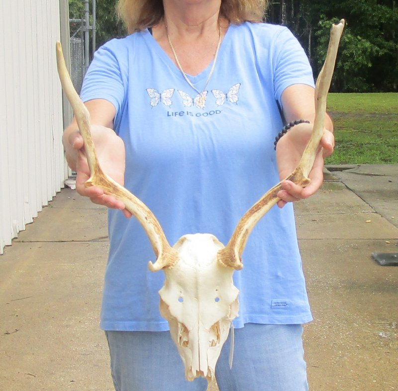 Real B-Grade Fallow Deer Skull and horns (antlers) measuring 15 and 16 inches long for $80