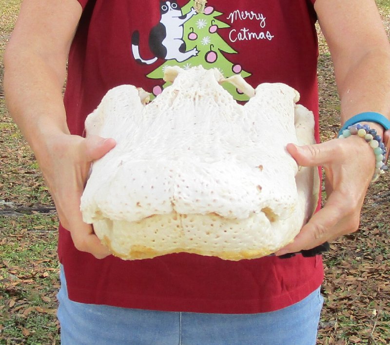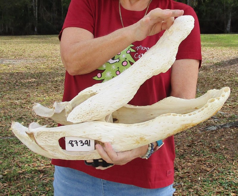 Semi- Cleaned Florida Alligator Skull (Alligator mississippiensis) measuring approximately 22 inches long and 11 inches wide and is from an estimated 11 foot Florida alligator.  The alligator skull has been beetle cleaned and whitened  - Missing teeth and back and top part of the skull.  Review photos.  It is a real gator skull - NOT a replica, and will have some natural blemishes, cartilage and chipped or missing teeth from living in the wild and fighting.