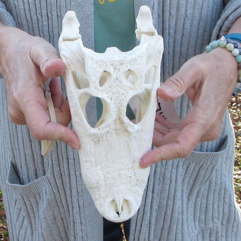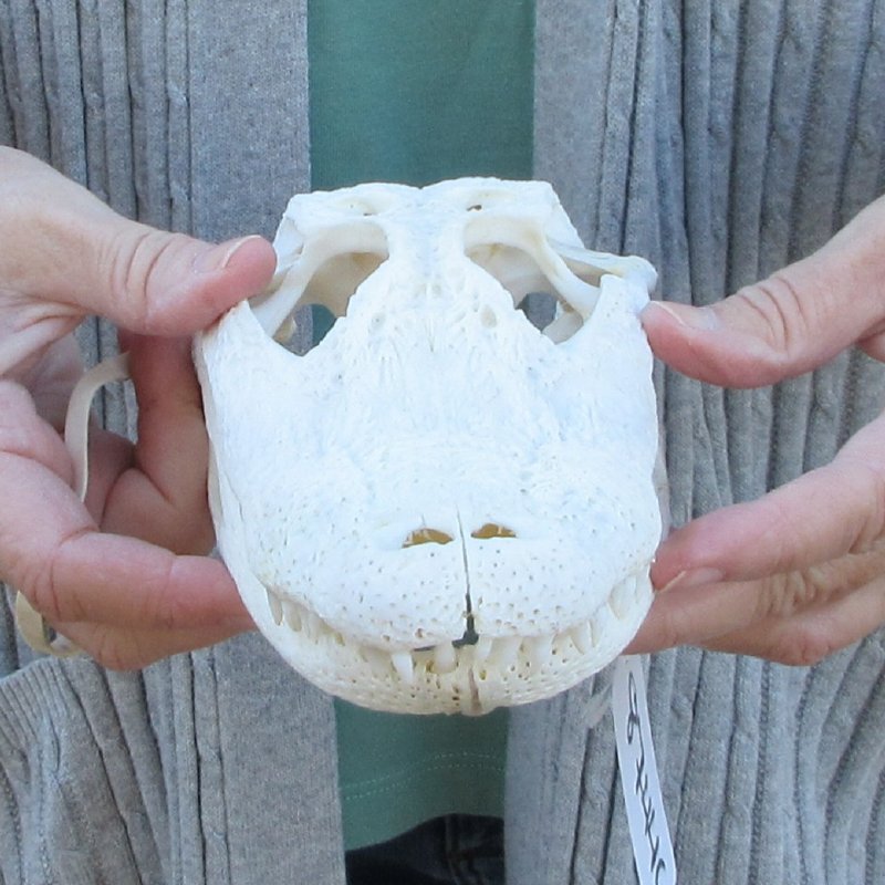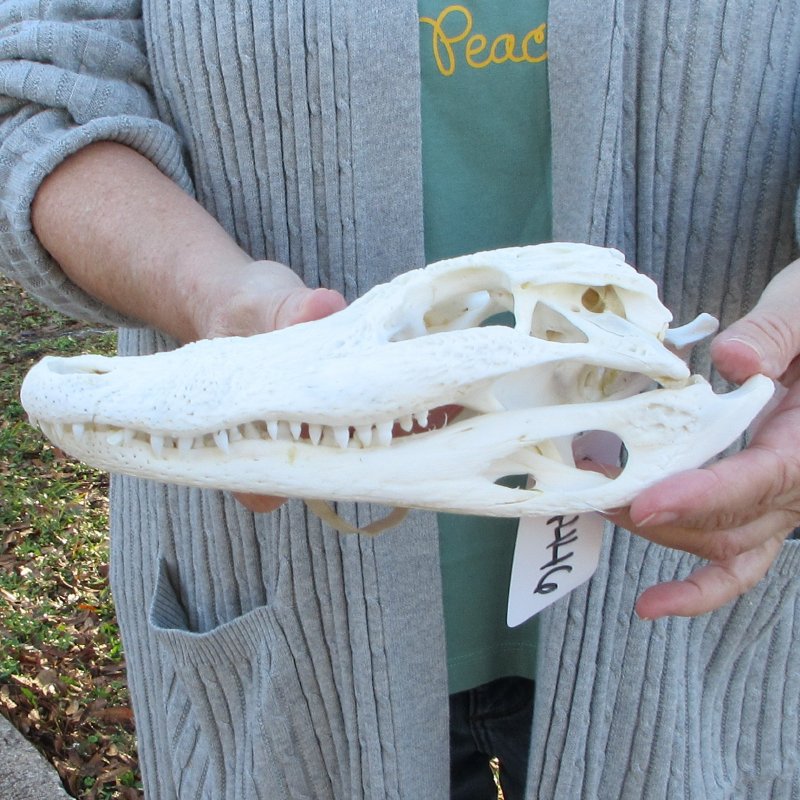 Florida Alligator Skull (Alligator mississippiensis) measuring approximately 9-1/2 inches long and 4 inches wide and is from an estimated 4 foot Florida alligator.    Yellow tint to skull. - Review all photos. The alligator skull has been cleaned and whitened.  It is a real gator skull - NOT a replica, and will have some natural blemishes, cartilage and chipped or missing teeth from living in the wild and fighting.