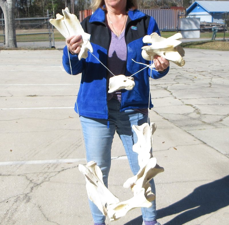 7 piece large Giraffe neck vertebrae set, giraffe neck bones. This giraffe vertebrae set, or giraffe neck bones set is from an African giraffe and will have stains and imperfections normally found on all wild animal bones. The neck vertebrae measures approximately between 5-1/2 inches up to 11 inches long. Review photos. Giraffe neck vertebrae bone sets are used by teachers, zoology students and bone collectors.