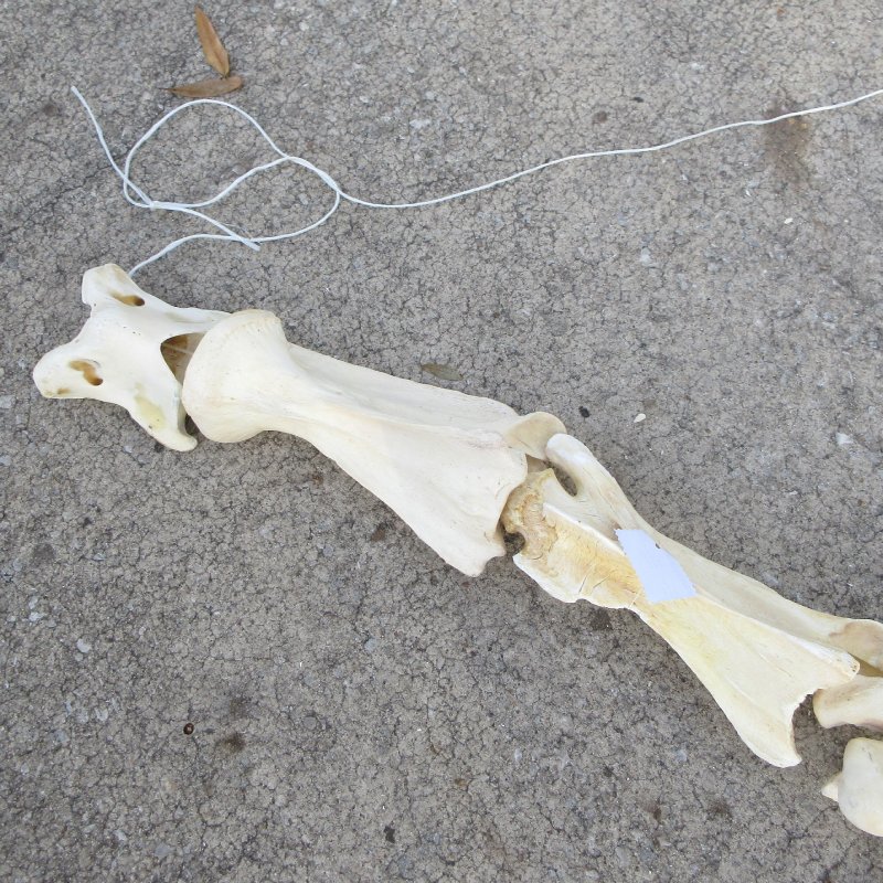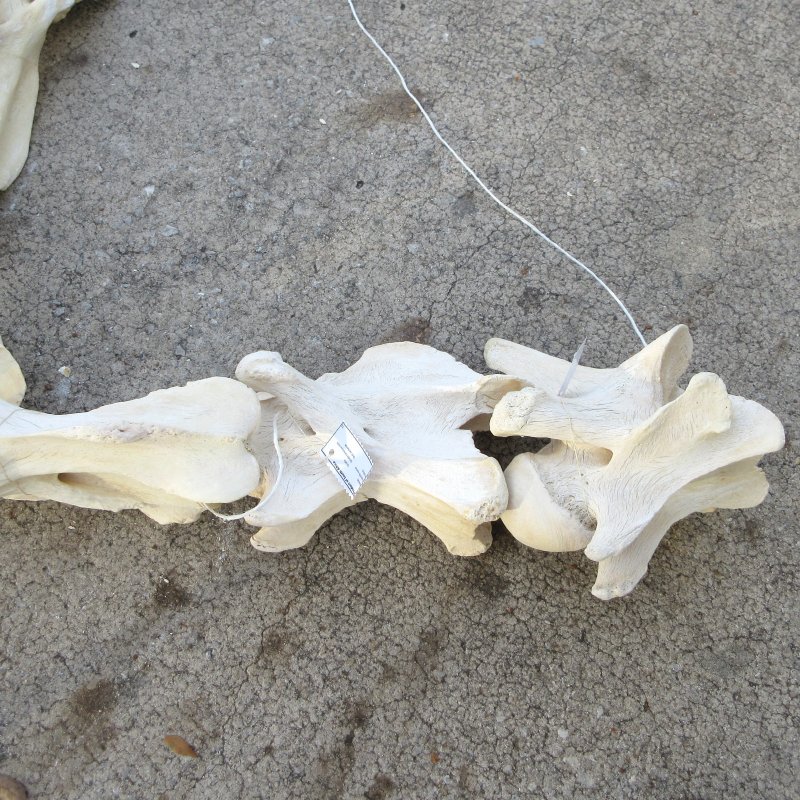 7 piece large Giraffe neck vertebrae set, giraffe neck bones. This giraffe vertebrae set, or giraffe neck bones set is from an African giraffe and will have stains and imperfections normally found on all wild animal bones. The neck vertebrae measures approximately between 6 inches up to 12 inches long. Review photos. Giraffe neck vertebrae bone sets are used by teachers, zoology students and bone collectors.