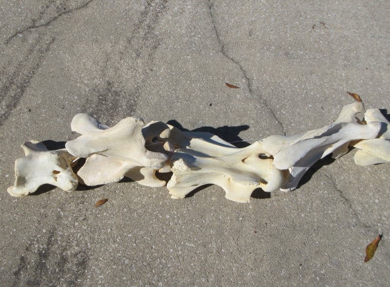 7 piece large Giraffe neck vertebrae set, giraffe neck bones. This giraffe vertebrae set, or giraffe neck bones set is from an African giraffe and will have stains and imperfections normally found on all wild animal bones. The neck vertebrae measures approximately between 6 inches up to 14 inches long. Review photos. Giraffe neck vertebrae bone sets are used by teachers, zoology students and bone collectors.