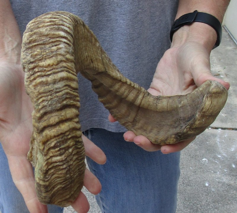 OUR RAM/SHEEP HORNS ARE 100% REAL - NOT REPLICAS! ALL OF THEM WILL HAVE NATURAL IIMPERFECTIONS FROM LIVING IN THE WILD INCLUDING SPLITS, GOUGES TINY HOLES, SCRAPES, ETC., WHICH WILL NEED TO BE PATCHED - REPAIRED.