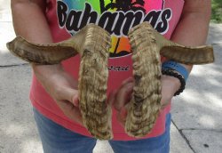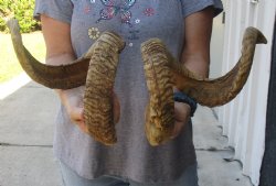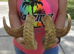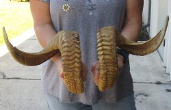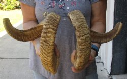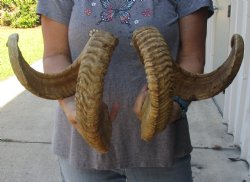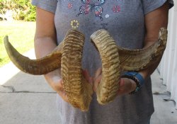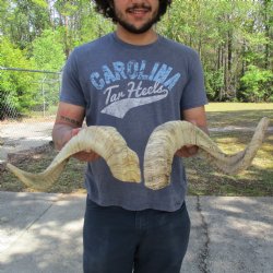 Matching pairs of sheep horns, ram horns for sale imported from India and Africa. All of the matching pairs of sheep horns, and ram horns shown below have been hand selected. They come in sizes from 17 inches up to 27 inches in size, measured around the curl of the horn using a cloth tape measure. These have been professionally cleaned in Africa and India and cleared for legal entry into the United States by the U.S. Fish and Wildlife Service and U.S. Customs.