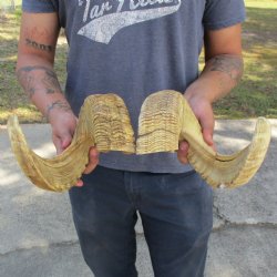 Our Ram Horns from Africa are all natural and have not been buffed. The Ram Horns from India have been buffed to a light shine. Ram horns and Sheep horns are used to make sconces, and are carved into intricate designs. Also crafters use ram horns and sheep horn for making knife handles and gun grips.
