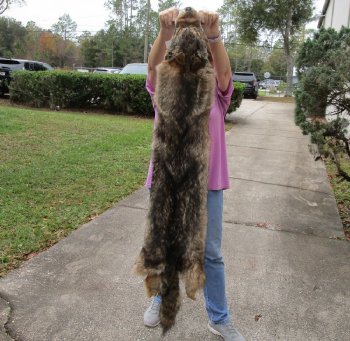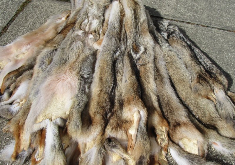 Wholesale Soft tanned coyote pelts for sale, coyote skins, hides. These coyote pelts, skins, hides are from wild coyotes and will have imperfections that are normally found on all wild animals. These coyote skins measure between approximately 55 inches to 66 inches long. These coyote pelts/furs will vary in size and color. Coyote fur is widely recognized for its unique blend of rugged charm and luxury, characterized by its dense, long-haired texture and multi-tonal appearance. Their colors typically range from silvery-gray and pale buff to rich reddish-brown and creamy tones. Each pelt is unique, offering a "casual chic" or rustic look that works well for both clothing (collars, cuffs) and home decor (pillows, blankets).