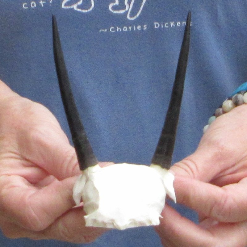 Steenbok Skull Plate (Raphicerus campestris) for sale with horns measuring approximately 3-1/2 inches long, measured around the curl of the horns. - Review all photos. This Steenbok skull plate and horns is from a wild African Steenbok and will have imperfections caused by the animal living in the wild and the natural aging process. Steenbok skull plates with horns are a great gift for skull collectors and collectors of weird and unusual items.