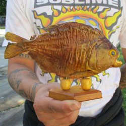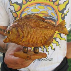Hand picked Real taxidermy piranha fish mounted on a wooden base allowing you to buy the one pictured. They have been imported from South America (Serralmus pygoentrus). Our taxidermy dried piranha fish come with a wooden base and are ready for display. Piranha fish have tightly packed teeth that interlock with each other. They use them to sheer and to puncture their prey. They can measure anywhere between 5 and 10 inches long, measured straight from teeth to tail. There are various piranha species so the size and coloration of them can vary significantly. They tend to blend in well with their surroundings.