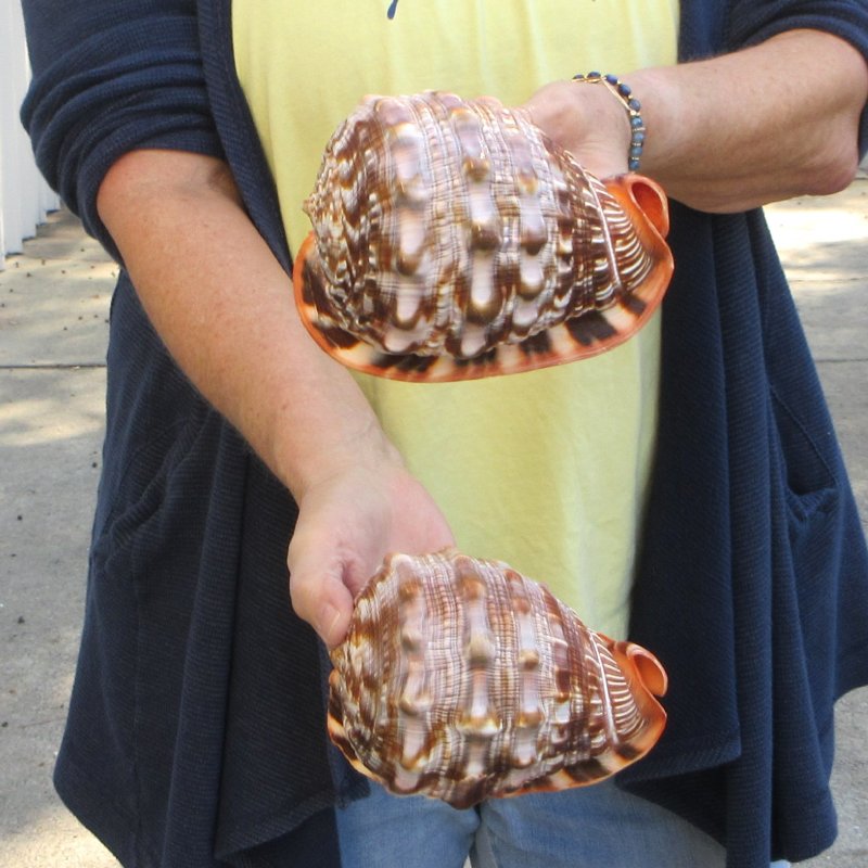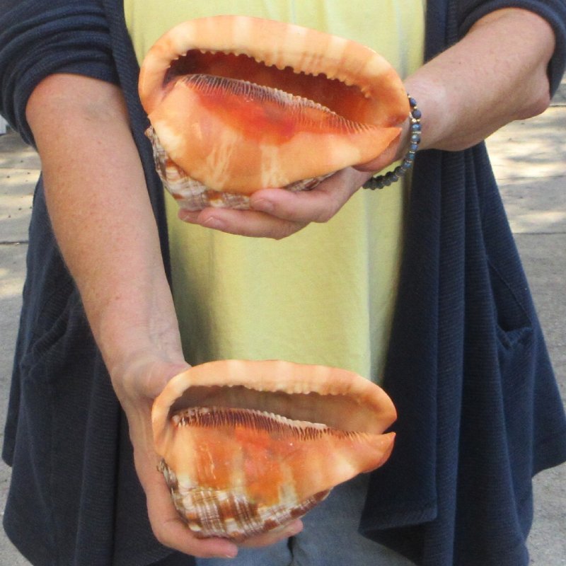 Two piece Cameo Bullmouth helmet shells with natural imperfections both measuring approximately 5 inches long. - Review photos. Hand picked from our large stock of sea shells, these Bullmouth helmet shells, or cameo shells, live mostly in warm waters around the world. Cameo shells of the male may differ from those of females. The bullmouth helmet shell's food consists mainly of sea urchins.