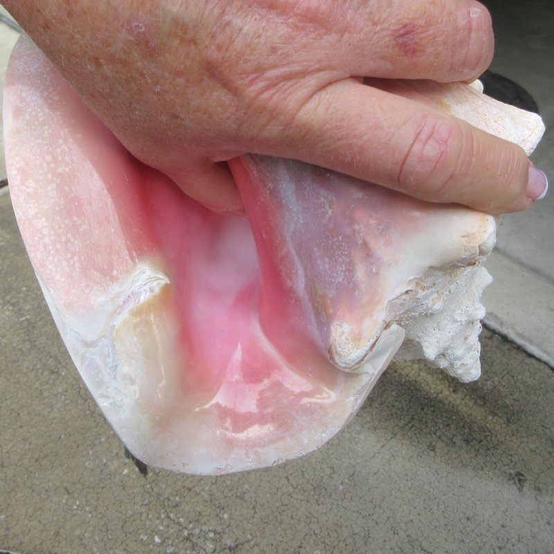This is a 2 Piece Lot of 7-1/2 & 8 inch B-Grade Pink Conch Shells for sale (Strombus gigas), large shells for decorating.   These shells measure approximately 8 inches long. These conchs will have a slit in the back of the shell, done to quickly remove the meat.  The lips have been machine edged.  These are B-Grade Shells - they will have calcium build-up, worm holes, chipped edges, broken or damaged points, etc. Piece broken off.- review photos.  Pink conchs are found in Southeast Florida, Bermuda and the West Indies. Pink conch shells are great for display in your home or around a pool area or in a garden.