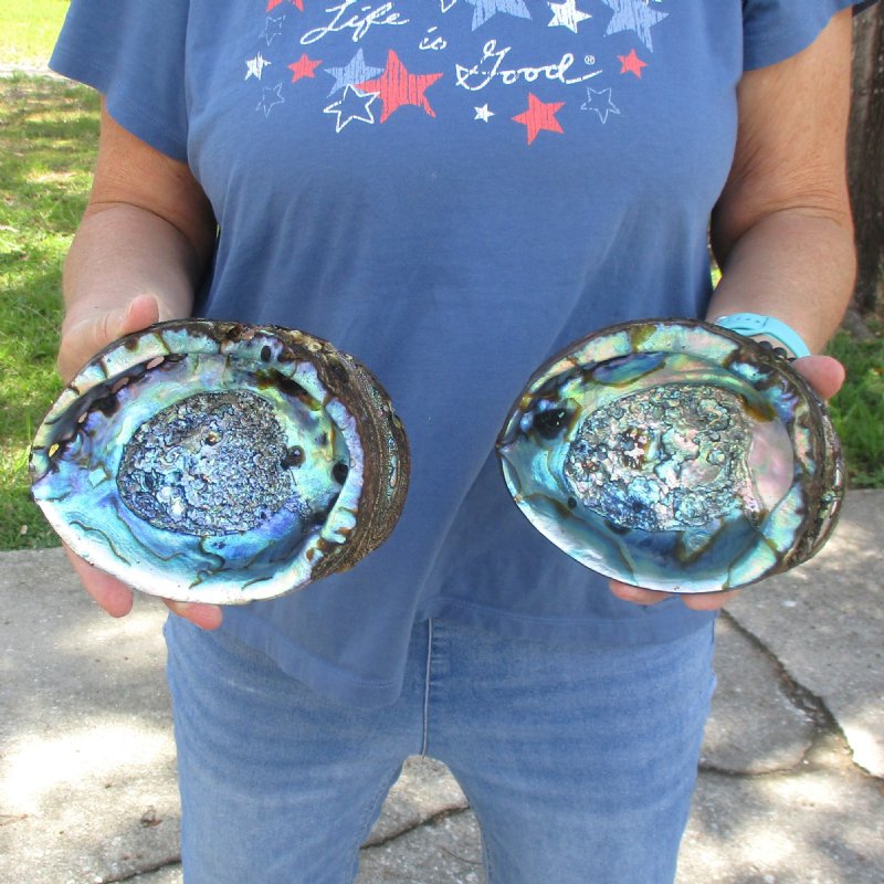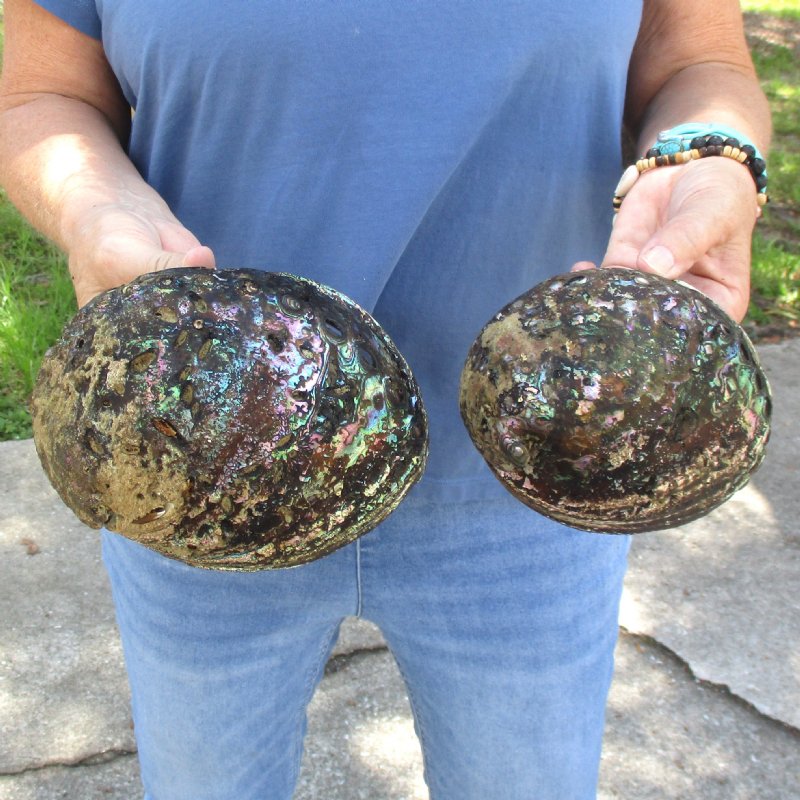 Two piece lot of 6 & 6-1/2" Natural Green Abalone for sale $23