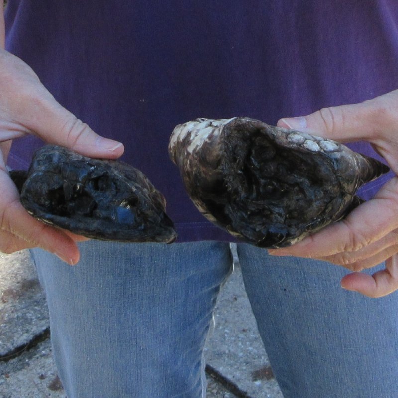 2 Piece Lot of Preserved Alligator Feet, measuring approximately 6-1/4 & 6-1/2 inches in length. The ends of the foot have been rough cut and painted black.  Review all photos. This alligator foot will have an odor from the preservation process that will subside over time. This is a Real Gator Foot - Not a Replica. It will have natural imperfections. These alligator feet come from gator farms where the gators are harvested for their meat and hide.