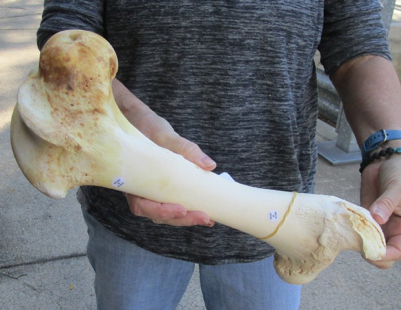 Water Buffalo femur (Bubalus bubalis) leg bones measuring between approximately 16 inches long. These Water Buffalo Leg Bone have been cleaned and whitened and imported from India. These bones will have some cracks, tiny holes, fine lines, chipped edges and stains or discoloration. Review all photos. Buffalo leg bones are used for carving, scrimshaw art, and for numerous other craft projects.