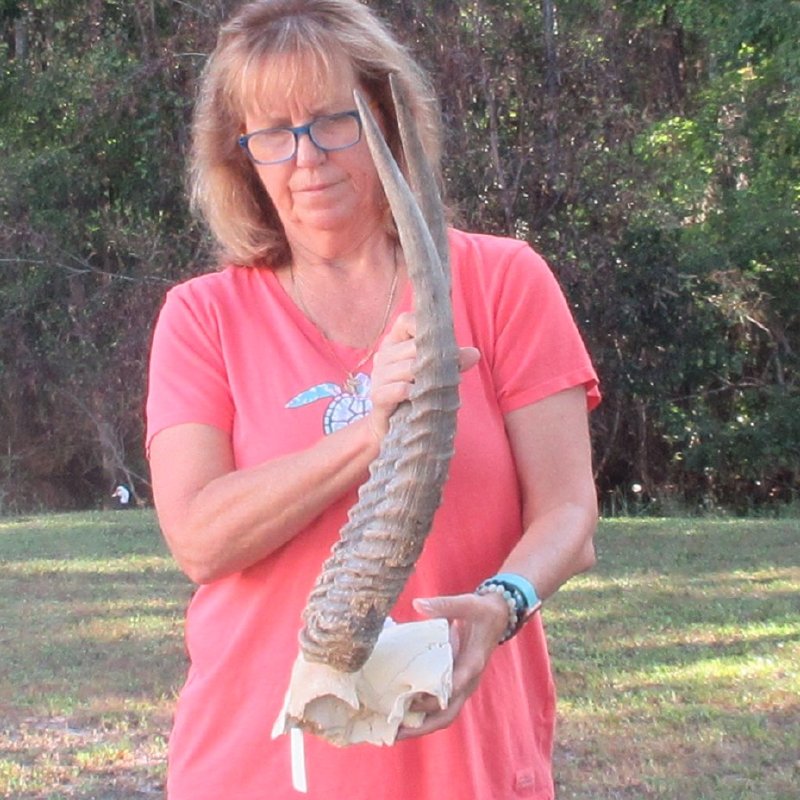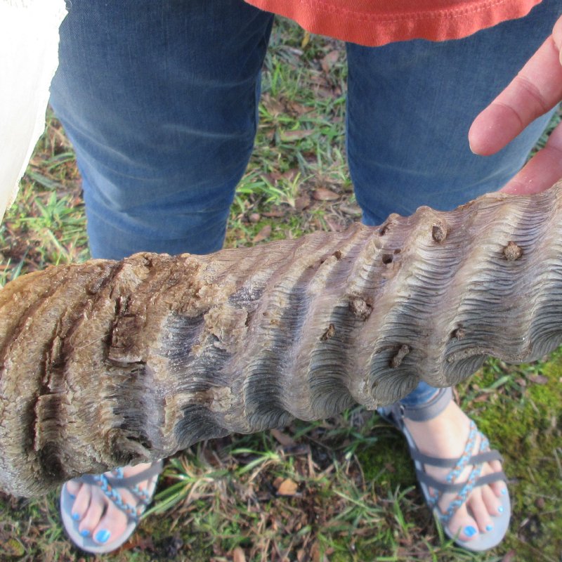 African Waterbuck Skull Plate (Kobus ellipsiprymnus) for sale, with horns measuring approximately 23 inches, measured around the curve of the horns, using a cloth tape measure -- not straight with a wood ruler. -   Worm holes and rough horns. Review all photos. This is a wild African waterbuck skull plate and will have imperfections due to the natural aging process and fighting and living in the wild -- scars, blemishes, rub areas, broken teeth, bug bite marks, etc. All our waterbuck skull plates with horns are by-products of the African Government's culling program and farming industry. All products were professional cleaned and/or professionally tanned in South Africa and cleared by the U. S. Fish and Wildlife Services and U.S. Customs Services for legal entry into the United States.