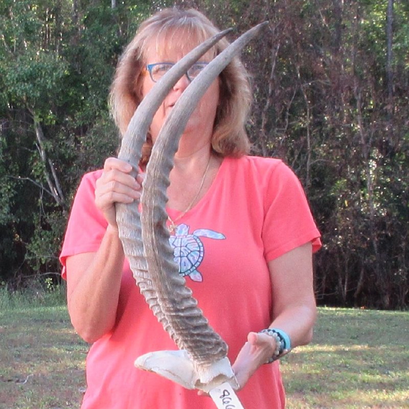 African Waterbuck Skull Plate (Kobus ellipsiprymnus) for sale, with horns measuring approximately 26 & 27 inches, measured around the curve of the horns, using a cloth tape measure -- not straight with a wood ruler. -   Review all photos. This is a wild African waterbuck skull plate and will have imperfections due to the natural aging process and fighting and living in the wild -- scars, blemishes, rub areas, broken teeth, bug bite marks, etc. All our waterbuck skull plates with horns are by-products of the African Government's culling program and farming industry. All products were professional cleaned and/or professionally tanned in South Africa and cleared by the U. S. Fish and Wildlife Services and U.S. Customs Services for legal entry into the United States.