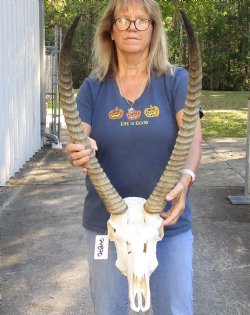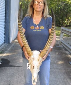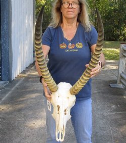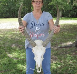 Choose an authentic African waterbuck skull for sale or waterbuck skull plates with horns, all hand picked and photographed allowing you to select the exact one you want. A waterbuck skull is perfect for African themed decorating, hunting lodge decor and rustic cabin decor. All our waterbuck skulls with horns are by-products of the African Government's culling program and farming industry. All products were professional cleaned and/or professionally tanned in South Africa and cleared by the U. S. Fish and Wildlife Services and U.S. Customs Services for legal entry into the United States.