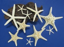 We carry bulk off white starfish for crafts and white pencil or off white finger starfish wholesale from 2 inches up to 10 inches in size; off white flat Philippine starfish from 1 inch to 4 inches; off white knobby starfish wholesale from 2 inches up to 10 inches in size and off white jungle mud starfish from 4 inches to 6 inches in size for making white starfish decorations, ornaments, starfish wedding favors and starfish crafts and wedding centerpieces. Off White small starfish for crafts are available in packs of 100 pieces for making starfish wedding favors. All of these natural white starfish are off white in color and the thorny starfish are a cream color. You can easily spray them any color you need to match your starfish craft project or wedding colors.