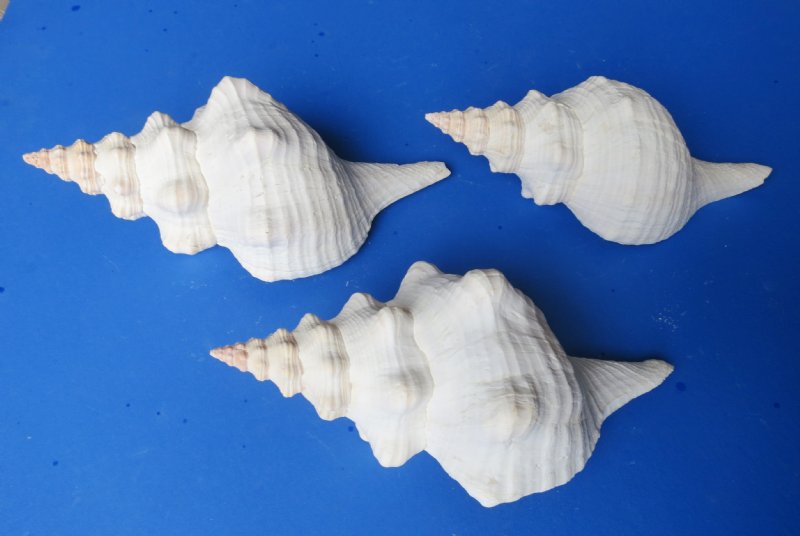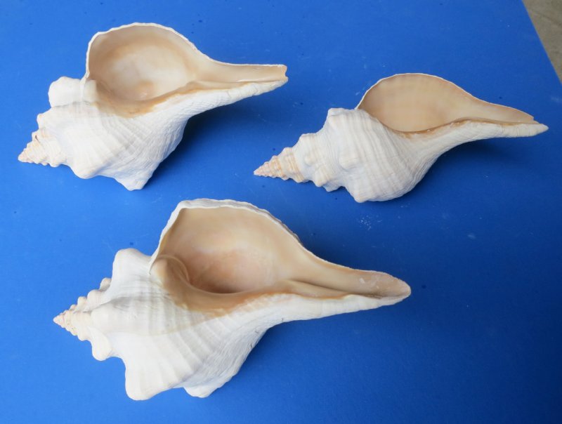 Wholesale horse conch shells for sale, commercial grade, with natural imperfections measuring approximately 10 inches in size. Horse conch shells have a large mouth opening, and are used for making beach wedding centerpieces. Their pale peach exterior blends nicely with any wedding decor and the large shell size makes horse conchs the perfect shell to use in making shell centerpieces for beach weddings. Triplofusus giganteus, previously known as Pleuroploca gigantea, common name the Florida horse conch, is a species of extremely large predatory subtropical and tropical sea snail, a marine gastropod mollusc in the family Fasciolariidae, the spindle snails, tulip snails and their allies. Although known as a horse conch, this is not a true conch, as it is not in the family Strombidae. This species is the largest gastropod in the American waters, and one of the largest univalves in the world.