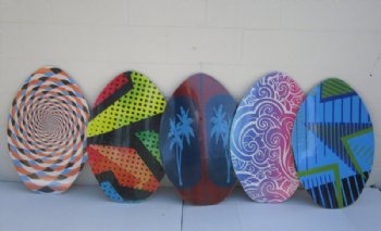 Wholesale 30 inch Vintage Art Heat Laminated Wood Skim boards in 5 assorted designs. These 30 inches wood skin boards are perfect for beach gift shops needing inexpensive or cheap wooden skim boards wholesale for resale.