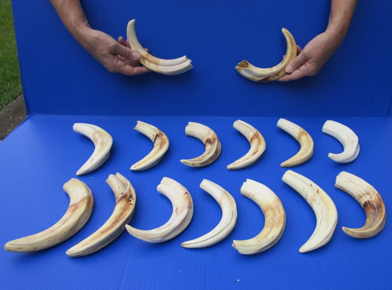 Large Wholesale African warthog tusks 10 inches to 10-7/8 inches - 1 pieces @ $44.00 each; 4 pieces @ $39.00 each