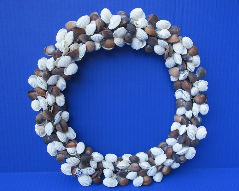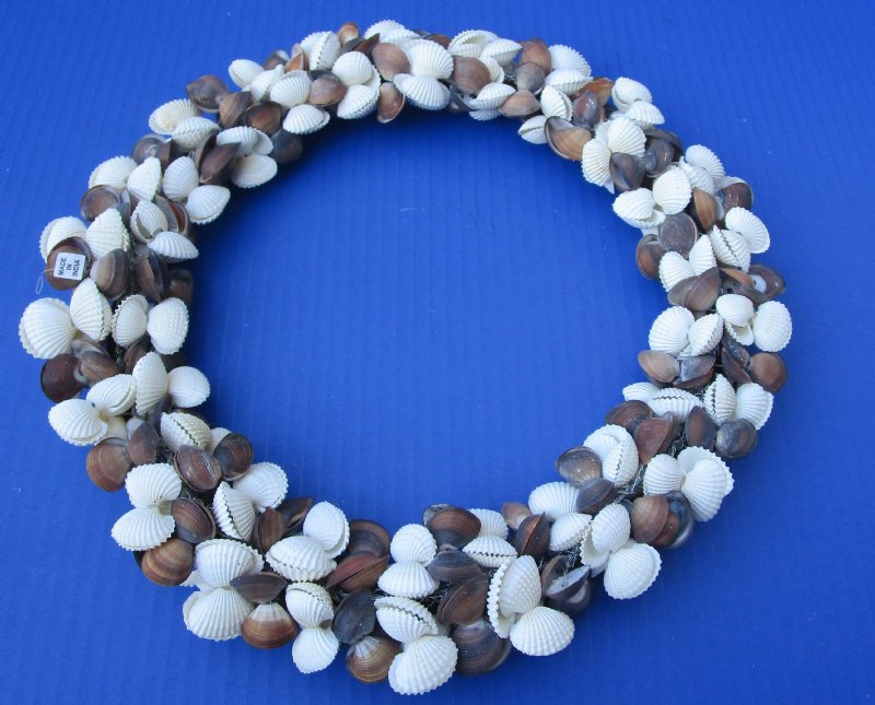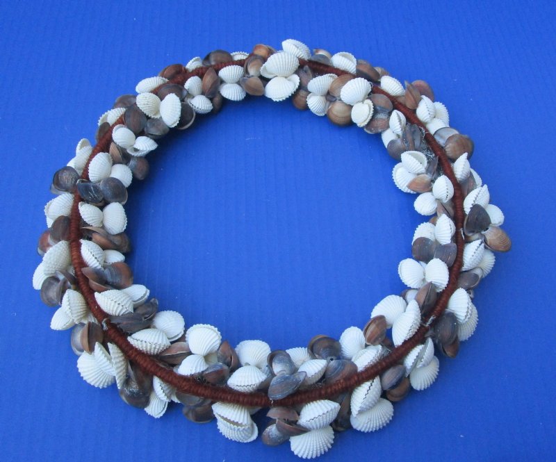 Wholesale Brown and White Shell Wreaths for decor - 11 pcs @ $6.25 each