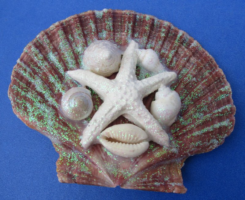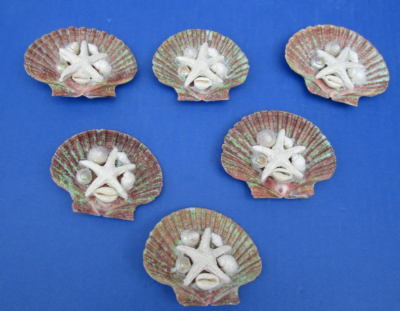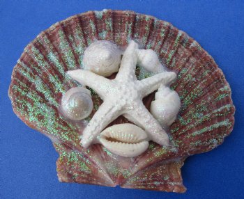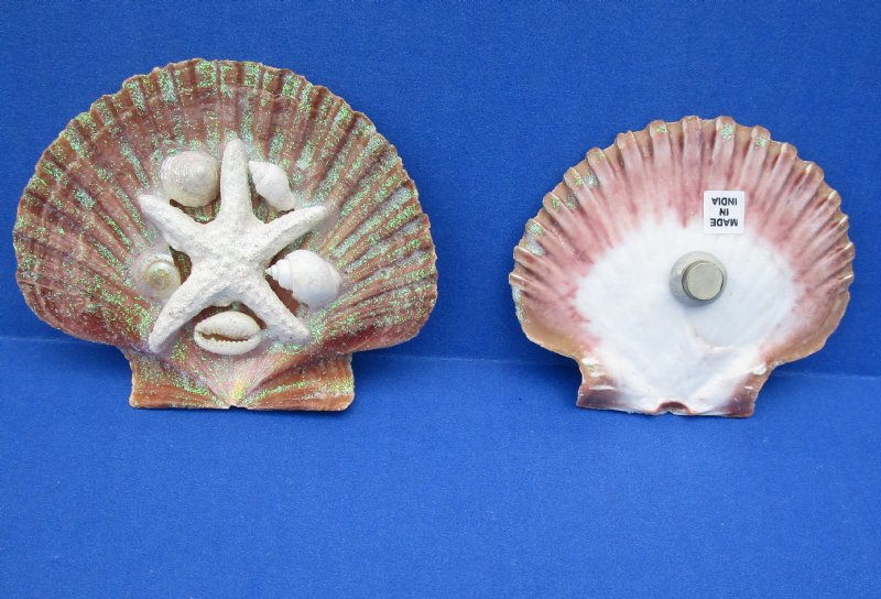 Wholesale Decorated Mexican Flat with starfish and seashells magnet, 3 to 3-1/2 inches - 10 pcs @ $1.10 each; 60 pcs @ $.99 each