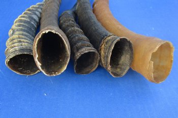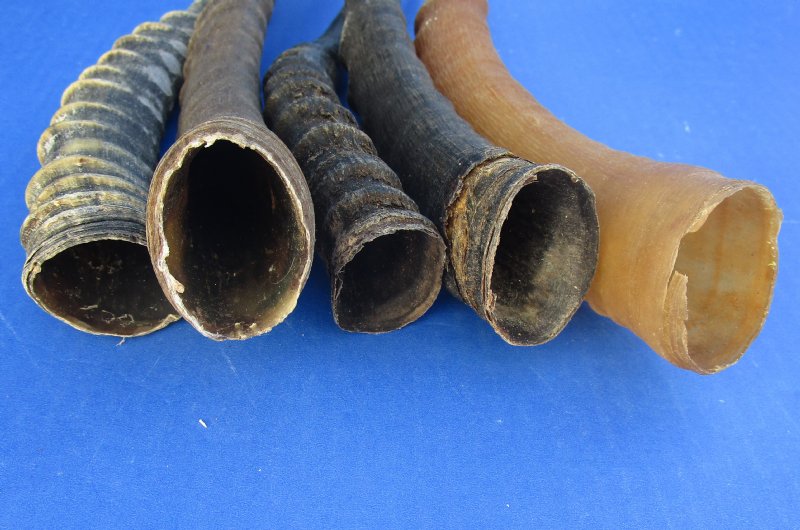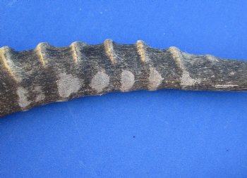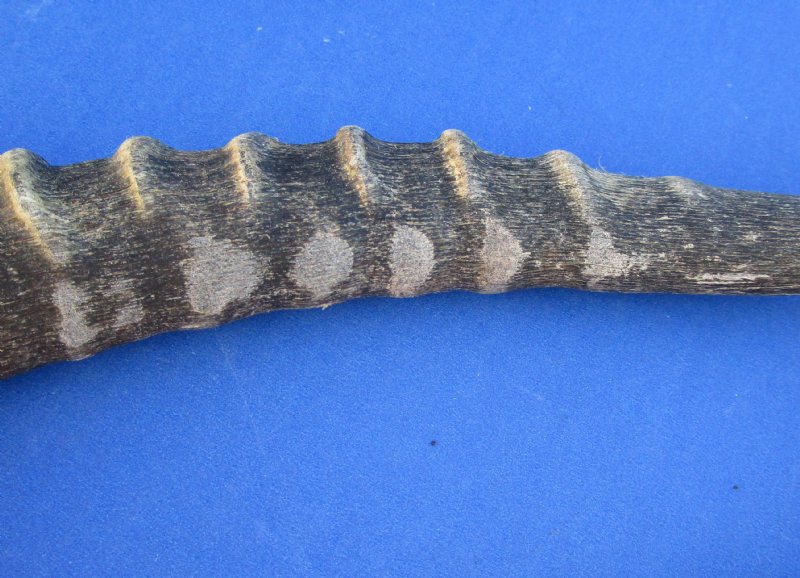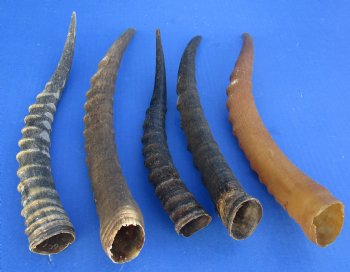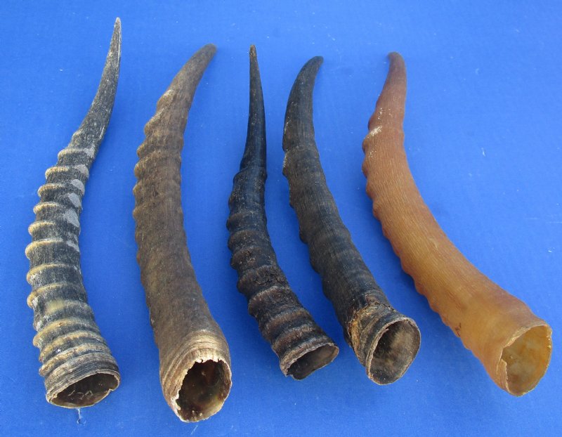 Wholesale Female Blesbok horns, Damaliscus pygargus phillipsi, commercial grade, from wild and farmed African Blesbok measure between approximately 11 inches and 15 inches measured around the curve of the horns -- not straight with a wood ruler. Blesbuck horns, or blesbok horns wholesale are used in making furniture, cane handles and in numerous taxidermy crafts.  These are real animal horns, NOT replicas. The blesbok horns will have a few natural imperfections from living in the wild: cuts, scrapes, rub areas, blemishes, scars and other natural imperfections.