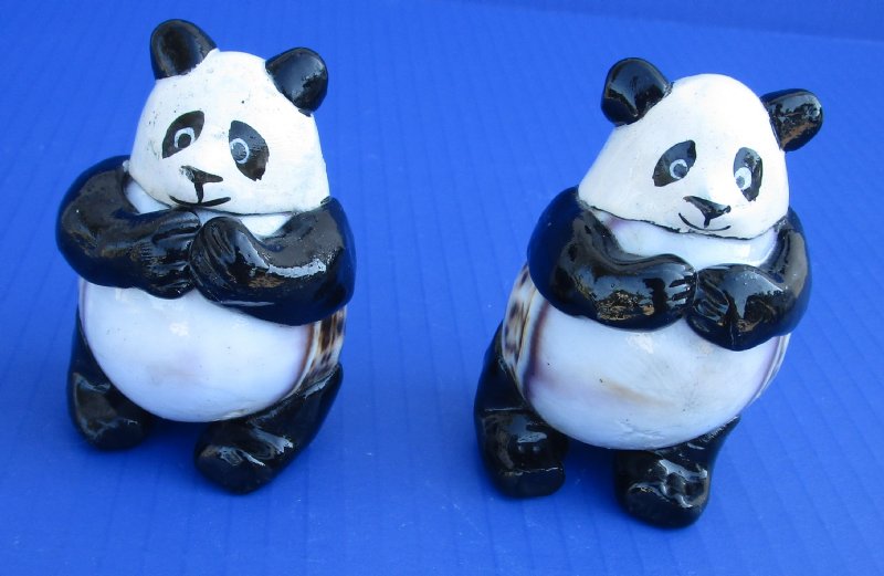 Wholesale Painted Tiger Cowrie Panda Bear novelties 3 inches long - 12 pcs @ $2.75 each; 48 pcs @ $2.45 each