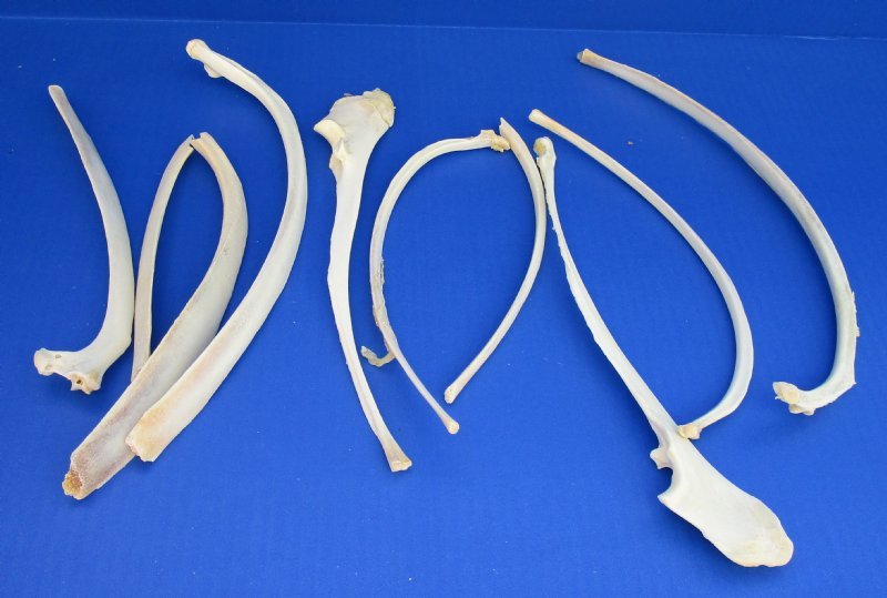 Wholesale Assorted Real wild hog rib bones and Wild Boar rib bones for sale with natural imperfections, measuring approximately 6 to 12 inches long.  These wild boar rib bones have been cleaned and whitened; however, they may have some dried cartilage on the ends of the bones and some may have chipped edges, slits, flaky and have some discoloration/dirt  - Review photos. Great to use for painting/carving, or your crafting projects.