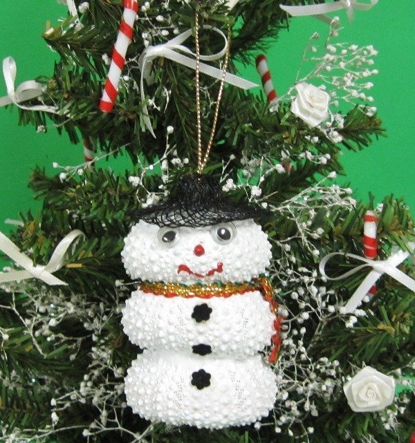 Wholesale Sea Urchin Snowman Christmas Ornament  - 5 @ $2.75 each; 30 pcs @ $2.45 each