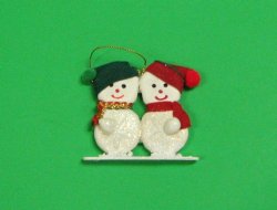 Wholesale Double Seashell Seabiscuit Snowman Ornaments are hand crafted out of natural baby sea biscuits also referred to as sea cookies.  This sea biscuit snowman couple ornaments are approximately 2-1/2" to 3" wide. They make an attractive addition to any nautical theme Christmas tree. Seashell ornaments sell year-round, are easy to transport, and are an inexpensive gift your customers can give to co-workers, neighbors, family, and friends. Whether you have a beach shops, Christmas shop or souvenir and gift shop our shell ornaments will be an item you cannot afford to be without.