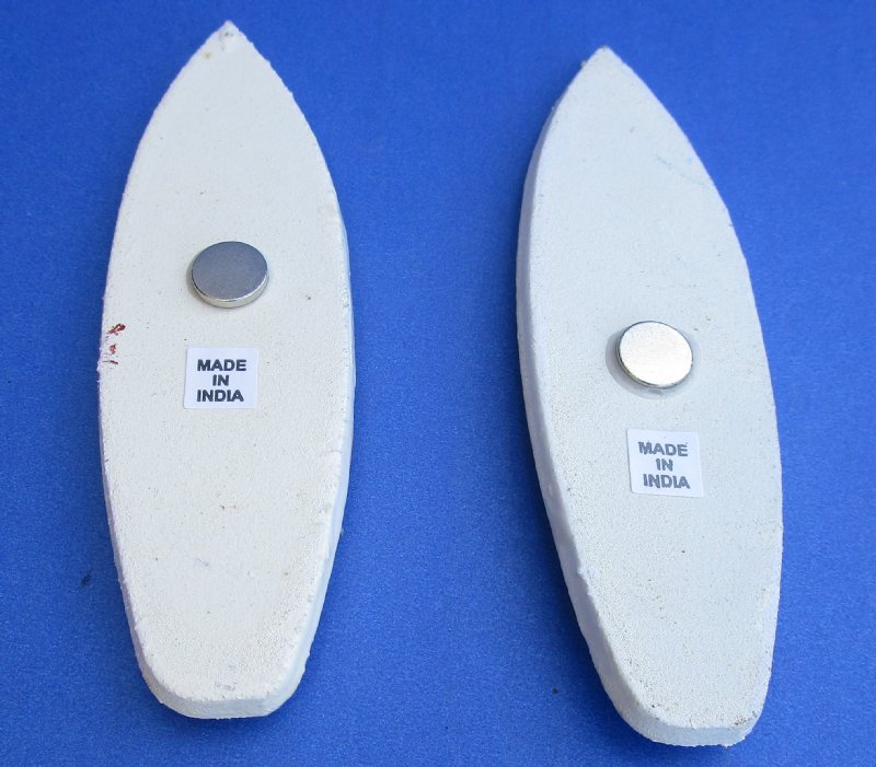 Wholesale Sunset Beach Scene Surf board magnet with little seashells, measuring approximately 4 inches.  These surf board magnets are made out of a faux wood material.  These are great souvenir gifts and are cute novelty item collected by people of all ages.  These souvenir gifts are a profitable item for beach gift shops.