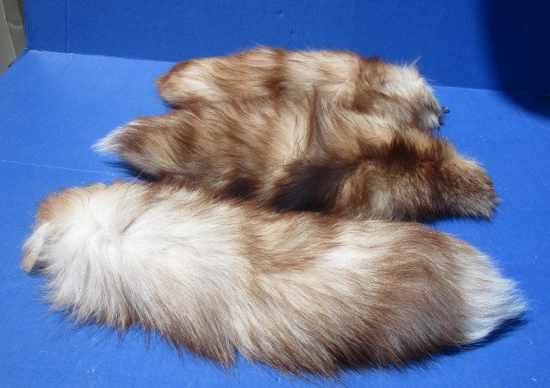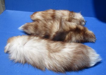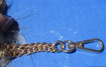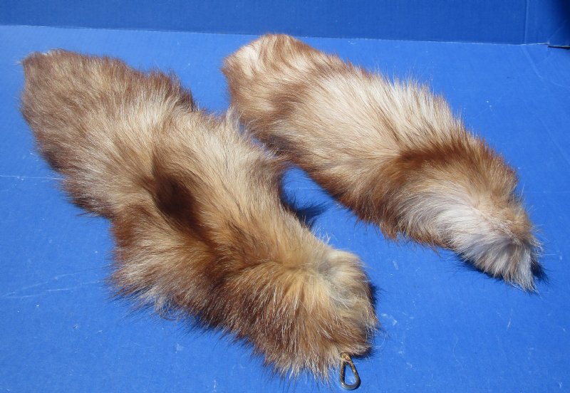 Wholesale Tanned Dyed Crystal Fox tail keychains for sale, they measure between approximately 16 to 18 inches long with an attached gold color connecting clasp and chain that can be used as a keychain, handbag accessory, backpack accessory and more. The color of the tails vary. (No 2 will be identical). These Dyed Crystal Fox tails are from wild fox and will have imperfections that are normally found on all wild animals.