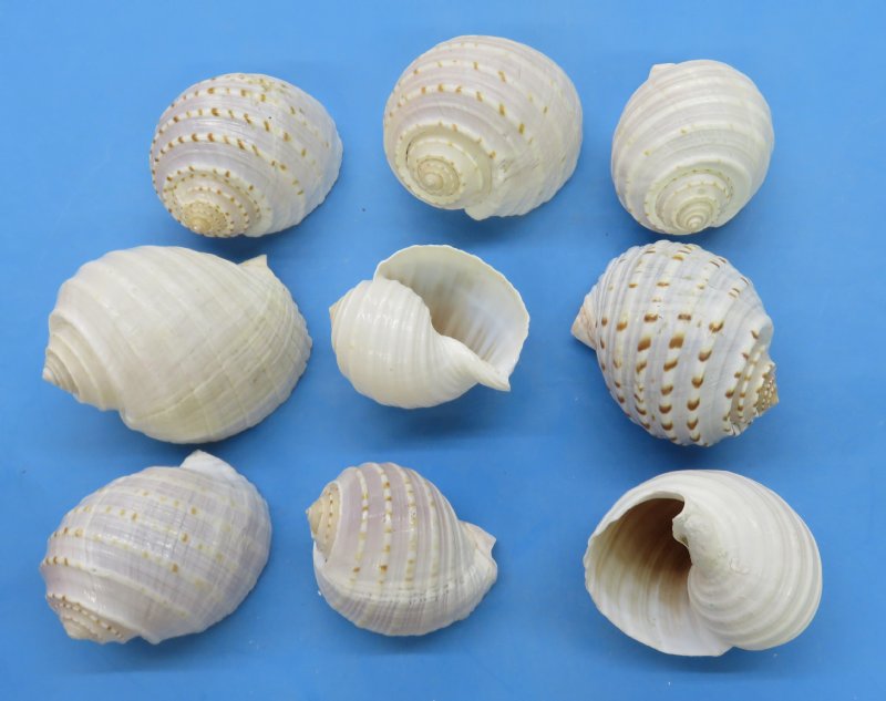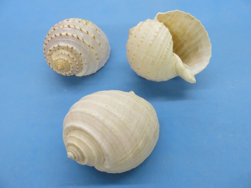 We carry wholesale Spotted Tun shells,, light weight shells for large hermit crabs Tonna dolium, also called tonna tessellata seashells measuring approximately 4 inch to 4-7/8 inch in size. Spottted tun shells are from the family Tonnidae. These shells are light weight and are great shells for large hermit crabs. Spotted tun shells are also used in making seashell ornaments, shell characters, candles and in shellcraft and shell art. Tun shells are thinner and usually roomier than helmet shells. They are almost exclusively tropical, prefer deeper water, and feed mainly on fish, seaurchins and crustaceans. Their free-swimming larval life is lengthy and has helped some species to spread great distances.