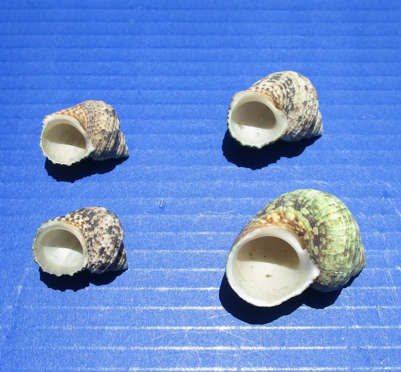Turbo bruneus, common name the brown dwarf turban or the little burnt turbo turban shells wholesale natural shells for hermit crabs measure approximately 1 inch to 1-3/4 inches in size. These turbo bruneus shells are used for hermit crab homes, shell crafts, including making shell mirrors, seashell ornaments, shell candles, shell art, and numerous shell craft products.